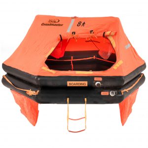 The life raft is inflated by fully withdrawing its painter line and providing a sharp tug as the end of the line is reached. The painter line is usually 8 metres long. The Throw-Overboard life raft type requires survivors to board the floating life raft by stepping into it, climbing down the vessel’s side or using an evacuation slide to reach the life raft’s entry point. Survivors already in the water may require assistance with boarding.